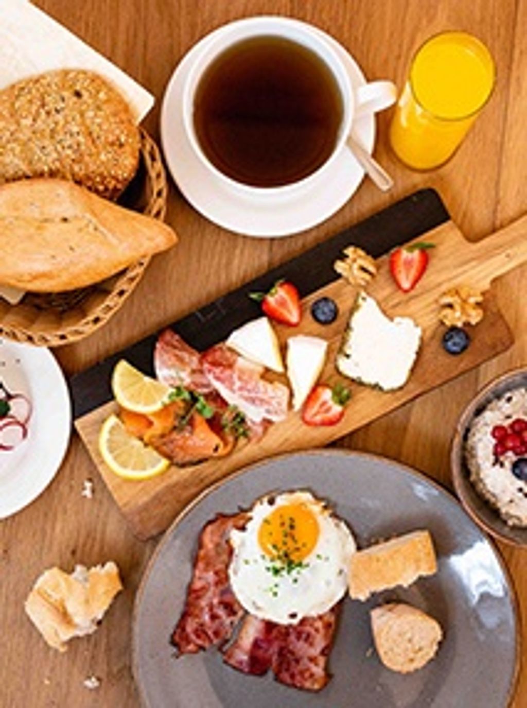 Reichhaltiges Mostviertler Bio Frühstück mit regionalen Spezialitäten, frisch gepresstem Orangensaft, Mostviertler Säften und selbstgemachtem Müsli