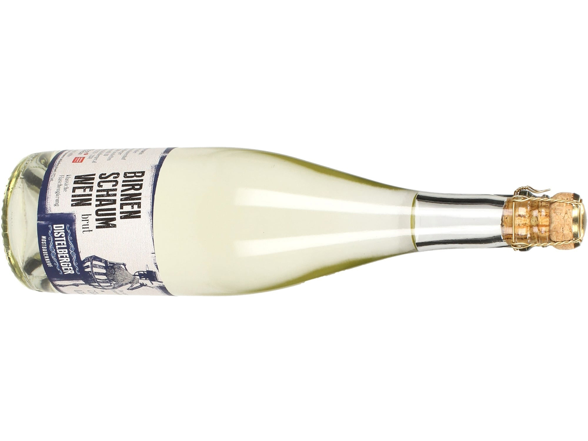 Eine Flasche Birnenschaumwein am Zimmer